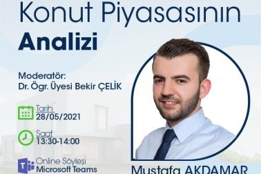 28.05.2021 Cuma Günü Saat 13:30'da Üniversitemiz İktisadi ve İdari Bilimler Fakültesi İktisat Bölümü öğretim üyesi Dr. Öğr. Üyesi Bekir ÇELİK moderatörlüğünde Akdamar Gayrimenkul ve Danışmanlık yöntecisi Mustafa AKDAMAR'ın konuk olarak katıldığı "Türkiye ve Kayseri Konut Piyasasının Analizi" konulu etkinlik düzenlendi.